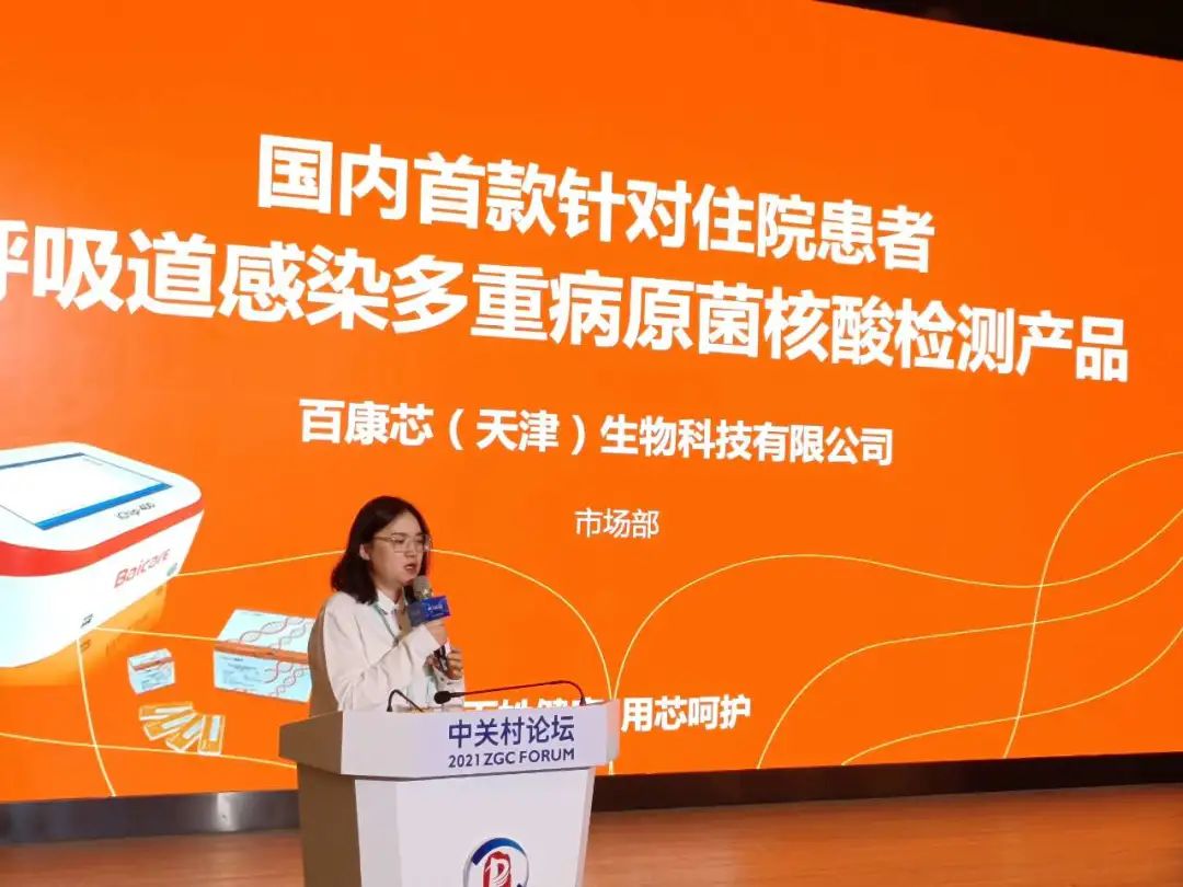 中關(guān)村論壇國際技術(shù)交易大會(新技術(shù)新產(chǎn)品首發(fā)與推薦大會)上,百康芯市場總監(jiān)白雅麗女士帶來了《國內(nèi)首款針對住院患者的呼吸道多病原核酸檢測產(chǎn)品》報告,詳細講述了該產(chǎn)品可實現(xiàn)一次加樣多指標并行檢測,以更加簡捷的方法和更短的檢測時間對多種病原體進行檢測、分析和報告。為臨床醫(yī)生提供快速而準確的檢測結(jié)果,減少病人等待的窗口期和治療周期,為臨床經(jīng)驗用藥提供科學依據(jù)。